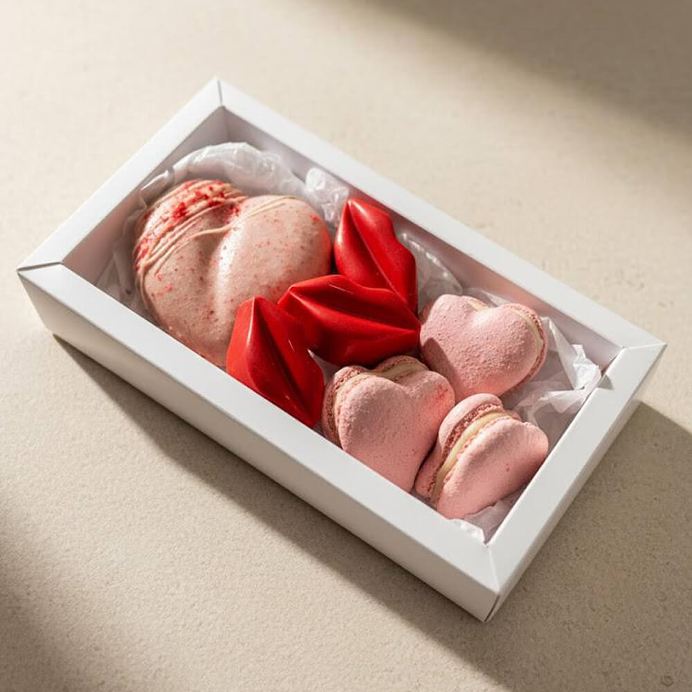 Макароны с белым шоколадом и личи. с брусничным конфети