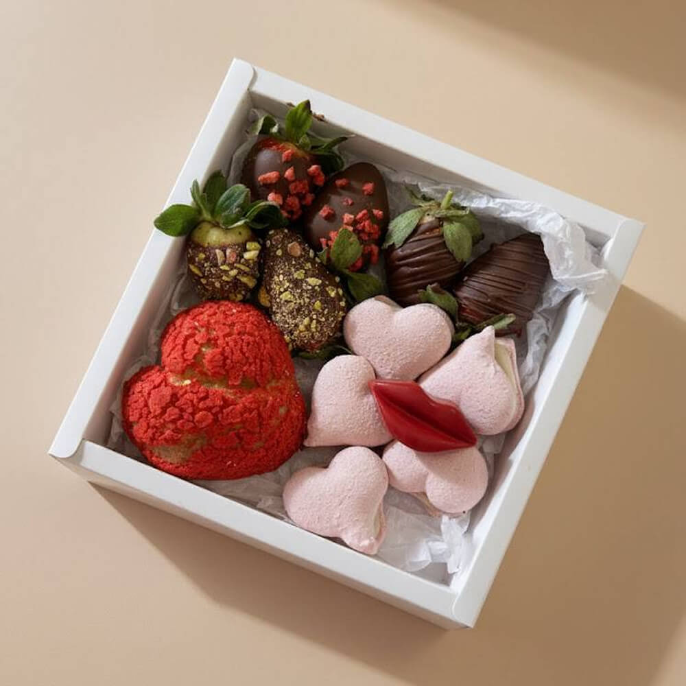 Губы из гречишного и белого шоколада с клубникой и кофе